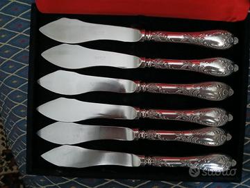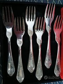 set di 6 forchette e 6 coltelli da pesce, in MELCHIOR,lega di zinco e argento,molto comune in Unione Sovietica negli anni 60.