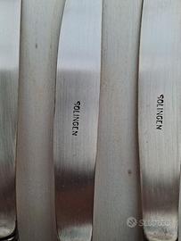 Servizio 14 posate per dolce Solingen in ottone satinato con manico d'argento