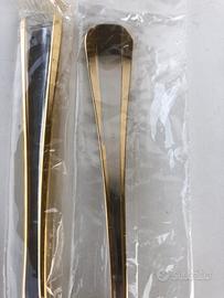 1set di 4 posate in acciaio inox 18/10 con profili placcati in oro 24 K, della ditta italiana Abert.