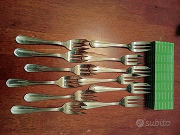 Posateria Sambonet servizio da 12: 12 cucchiai,12 forchette,12 coltelli,12 forchette e 12 coltelli da dolce/frutta,12 forchette pesce (+6) , 1 mestolo 1 paletta 1 cucchiaio per un totale di pezzi 81
