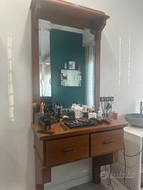 Vendo postazione barber in legno pregiato come in foto. Sedia barber con pompa idraulica Vendo per cambio arredamento. Regalo anche barber pole