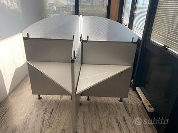 Vendo 2 Postazioni lavoro call center con 4 scrivanie angolari per postazione. 300 euro entrambe , oppure 100 quella piccola(50cm ogni angolo) e 200 quella grande(100cm ogni angolo). Le postazioni sono smontate pronte per il trasporto.