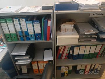 Vendesi causa rinnovo locali postazione da ufficio completa di scrivania e mensola a 3 piani. Colore grigio. Legno.