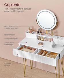tavolo da toeletta nuovo, appena montato e mai utilizzato. Completo di specchio con luce led. Vendo per errore nelle misure.