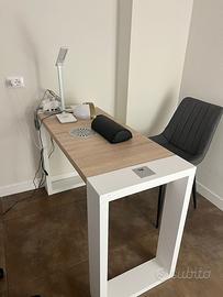 Postazione per manicure completa di tutto il necessario: - fresa con punte in ceramica - lampada led da tavolo (fornetto) - tavolo piano living con foro - aspiratore elios - sgabello seduta Usata molto poco, in ottime condizioni e funzionante.