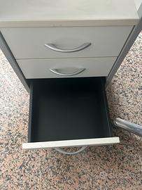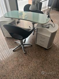 Postazione professionale completa di tavolo, lampada, 2 sedie comodissime e 2 cassettiere. Praticamente nuova. Ritiro solo in zona, non si può spedire.