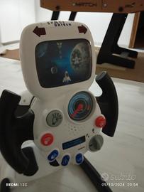simulatore postazione pilota astronave. gioco per bambini fino a 3 anni direi. gioco nn digitale, semplice tapirulant a batterie. mancano due viti di collegamento