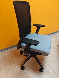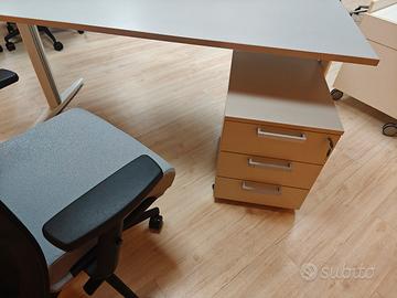 Postazione di lavoro completa formata da scrivania 160x80 piano grigio (piccoli difetti di poco conto) gambe bianco/ canalizzate per passaggio cavi, cassettiera 3cassetti con serratura nuova, sedia operativa Mood nuova, caratteristiche: movimento sincro multi block con regolazione su peso utente, braccioli regolabili 2D (altezza e profondità) schienale rete nero con cuscino supporto lombare regolabile, cover sedile sfoderabile e lavabile in lavatrice colore a scelta nero grigio rosso blu verde, ruote gommate, certificata UNI 1335 / CATAS. Pronta consegna con montaggio euro 40,00 entro 100km (Biella) oltre su accordi. Fattura disponibile per acquisto aziendale.