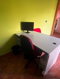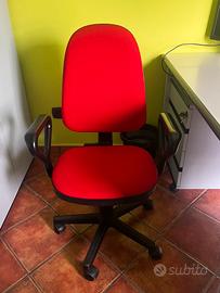 Postazione per ufficio che comprende: - 1 scrivania - 1 cassettiera sotto scrivania con ruote - 1 sedia girevole con ruote rossa In omaggio 1 divanetto 2 posti rosso per sala attesa