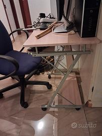Poltrona blu con rotelle perfettamente funzionante e pulita con piccola scrivania a rotelle per pc. Occupano poco spazio. Euro 50 tutto. Si trova a Latina. Ritiro a cura degli interessati che abitano in zona