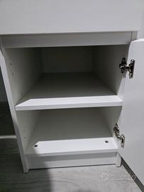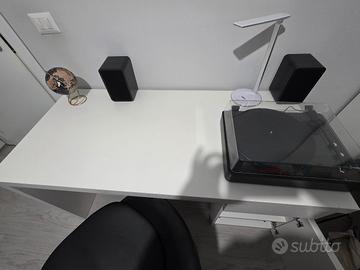 Vendo postazione studio completa IKEA, composta da scrivania MALM bianca con cassetto e ripiano e sedia da scrivania SKRUVSTA nera, girevole e regolabile.