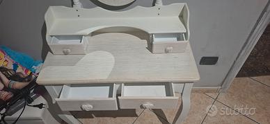 postazione trucco beige e bianca per ragazza con sgamnello completo usata alcune volte completa anche di specchio
