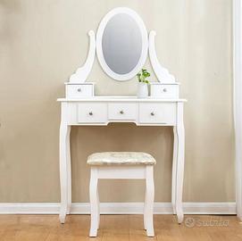 Postazione trucco inscatolata nuova grande in legno resistente Specchio console toletta scrivania da trucco: idea regalo donne o ragazze elegante postazione per trucco e toelettatura con uno specchio dalla forma ovale,