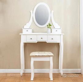 Postazione trucco inscatolata nuova grande in legno resistente Specchio console toletta scrivania da trucco: idea regalo donne o ragazze elegante postazione per trucco e toelettatura con uno specchio dalla forma ovale,