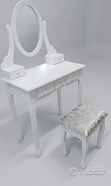 Postazione trucco inscatolata nuova grande in legno resistente Specchio console toletta scrivania da trucco: idea regalo donne o ragazze elegante postazione per trucco e toelettatura con uno specchio dalla forma ovale,