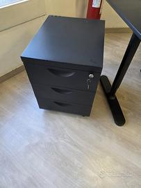 In vendita postazione ufficio completa e coordinata, perfetta per home office o piccoli studi, composta da: 1.Scrivania Regolabile in Altezza: 140x60cm • Piano: Nero opaco, elegante e resistente, ideale per computer e accessori (include sottomano coordinato come in foto). • Struttura: Meccanismo a manovella, per lavorare sia in piedi che seduti, con gambe robuste a T color nero opaco. 2.Cassettiera su Ruote: • Design: Coordinata, nero opaco. • Praticità: 3 cassetti spaziosi , completa di serratura e chiavi per la massima sicurezza dei documenti. • Mobilità: Facile da spostare grazie alle ruote piroettanti. 3.Sedia Ergonomica: • Confort: Seduta e schienale alto imbottiti in tessuto grigio scuro testurizzato, confortevole e traspirante. • Regolazioni: Altezza seduta regolabile, dotata di braccioli fissi per un supporto ottimale. • Mobilità: Base a 5 razze con ruote piroettanti. Dettagli Aggiuntivi: • Condizioni: Ottime condizioni generali, usata pochissimo • Stile: Moderno, minimalista e professionale. Ritiro • Ritiro a mano a Roma, zona colli albani. Non spedisco.