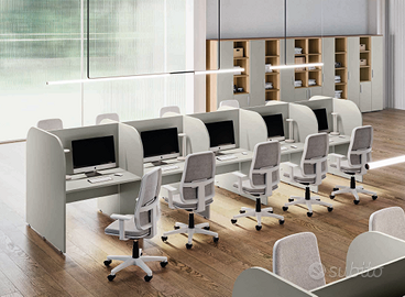 Postazione per call center bifacciale 6 posti ( 3+3) colore grigio nuvola o bianco completa di sei sedie 4 gambe in tessuto Tutto nuovo imballato astenersi affaristi e perditempo. per info 3351215825 Fulvio