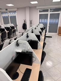 Si vendono postazioni per call center di alta qualita complete di scrivania, sedie, monitor e computer. Disponibili sia moduli singoli a 60 euro sia moduli avanti e indietro a 110 euro. Lo smontaggio e il montaggio sono a carico dell’acquirente. Solo whatsapp 3314355764