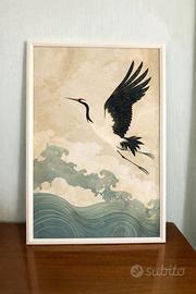 Poster decorativo in stile giapponese con gru in volo, una stampa dal fascino elegante e senza tempo, pensata per valorizzare gli ambienti con un’estetica raffinata, armoniosa e ricercata. Le linee leggere, le onde delicate e le tonalità morbide creano un equilibrio visivo che trasmette calma, leggerezza e bellezza, rendendo questo poster perfetto per chi ama un arredamento curato e di grande impatto estetico. Ideale per soggiorno, camera da letto, studio, ingresso o ufficio, aggiunge alla parete un tocco decorativo sofisticato, ispirato all’arte orientale e al design minimal. Perfetto sia come elemento d’arredo che come idea regalo per chi apprezza stampe artistiche, ambienti eleganti e dettagli decorativi capaci di distinguersi con discrezione. Stampato in formato A4 su carta fotografica, è pensato per offrire una resa visiva pulita, decorativa e piacevole da esporre.