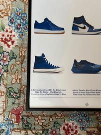Poster customizzato da me di una collezione di sneakers completamente blu, se il blu è nella tua palette preferita, questo poster fa al caso tuo.