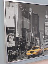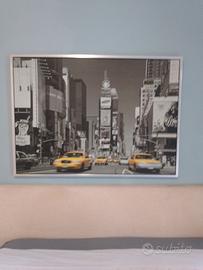 con taxi gialli tipici newyorkesi su sfondo bianco e nero