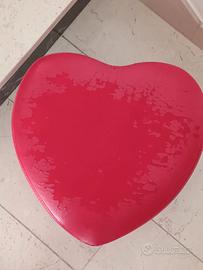 Vendo pouf a forma di cuore in ecopelle di colore rosso la parte della seduta è un po' sciupata. Misure larghezza 39 cm, profondità massima 39 cm, altezza 30 cm. Facilmente sistemabile da chi ha un poi di creatività. Consegna a mano