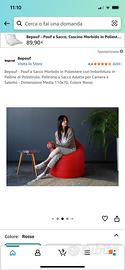 Pouf a Sacco Morbido in Poliestere con Imbottitura in Palline di Polistirolo, Poltrona a Sacco Adatta per Camera e Salotto - Dimensione Media 110x70, Colore Rosso