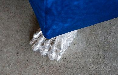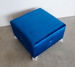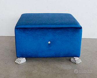 Vendo splendido pouf quadrato, pezzo unico realizzato artigianalmente. Non è un prodotto di serie, ma il frutto di una lavorazione attenta ai minimi dettagli, ideale per chi cerca un elemento d'arredo "Luxury" capace di donare carattere e luce all'ambiente. Struttura solida in legno imbottito in poliuretano espanso, garanzia di stabilità e durata. Rivestimento in pregiato velluto blu cobalto, morbido al tatto e dal colore profondo e cangiante. Lavorazione impreziosita da bottoni Swarovski originali "Aurora Boreale", non sono semplici vetri, ma cristalli che scompongono la luce in riflessi arcobaleno unici. Eleganti gambe a zampa di leone rifinite manualmente in foglia argento, che elevano il pouf con un tocco di classica raffinatezza. Oggetto nuovo, mai usato Misure 65 x 65 x H 40 cm Perfetto come seduta d'accento, tavolino da salotto eclettico o fondo letto elegante. Un tocco Pop/Barocco Moderno per soggiorni, boutique, hotel di charme o showroom.