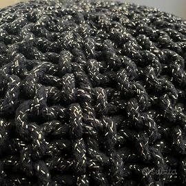 VENDO Pouf di design in tessuto intrecciato blu con inserti in lamè argento.