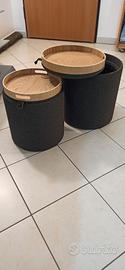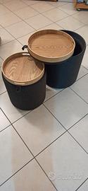 Setdi 2 Poufimbottiti in tessutoGrigioconvassoiocon struttura in materiale ecologico rivestito in Rovere