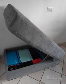 Pouf contenitore in tessuto grigio di Poltrone e Sofa' con lampada da tavolo Ikea. Misure 100 x 60 cm circa. Vendo ad Euro 39,00.