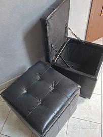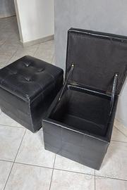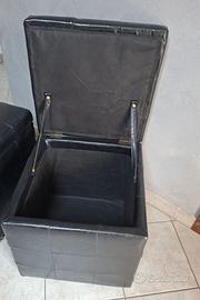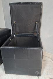 Coppia di Pouf contenitori (2) in pelle nera, robusti, come nuovi. Misure: 43x43 cm - H 46 cm