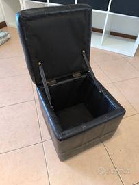 Vendo Pouf contenitore in similpelle nera, struttura robusta in legno di pino