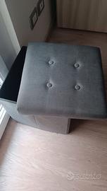 Pouf contenitore grigio, forma quadrata, pratico e salvaspazio, ideale per soggiorno o camera. Ottime condizioni generali.