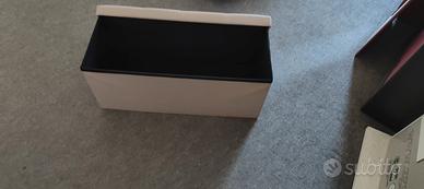Pouf in morbida ecopelle beige apribile con ampio contenitore. Le misure sono cm 35 x 76 h 35