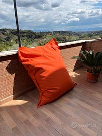 Pouf gigante/cuscino con materiale ignifugo. Completamente impermeabile e resistente ai raggi UVe agli agenti atmosferici. Ha morbide cuciture che permettono una seduta comoda. Facile da trasportare grazie alla maniglia laterale.