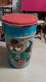 Grande contenitore in latta "pouf" molto colorato e divertente, per conservare giochi, cuscini o altro. Dim. 40 h70 cm