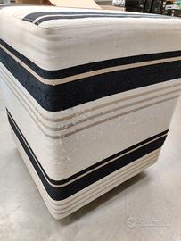 Pouf quadrato in tessuto, colore bianco panna con motivo a righe nere e beige. Misura cm 40x40, altezza cm 49. No spedizione