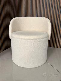 Ti piacerebbe avere un complemento utile e originale ? Allora il nostro pouf trasformabile Jolly è quello che fa per Te! Da un capiente pouf contenitore si trasforma all'occorrenza in una comoda poltroncina, utile per arredare più ambienti o per una seduta aggiuntiva. Stile minimal ed elegante, struttura robusta in mdf, rivestimento in morbidissimo tessuto effetto Bouclè avorio, disponibile in varie colorazioni. Dimensioni da poltrona: L: 58cm; H: 64cm; P:54cm. Altezza da pouf: 40cm circa. ____________________________________________________ Per qualsiasi info siamo a disposizione ai numeri: - Mostra numero -Mostra numero anche whatsapp