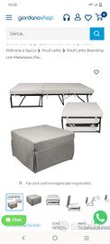 Vendo come da titolo pouf letto brandina (solo struttura e telo di copertura) senza materasso. Ideale per chi ha b&b, case vacanze o la necessità di avere un pratico pouf che si trasforma a lettino (facile da aprire e chiudere) e con poco ingombro.