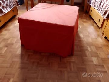 pouf, comodo e utile come appoggio, che si apre, diventando un letto singolo con un materasso abbastanza spesso.