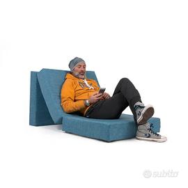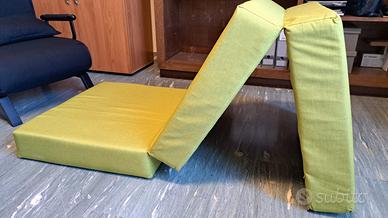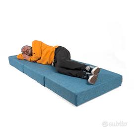 Vendo TOUF di marca Arketicom, in ottime condizioni: chiuso è un cubo, rivestito con una fodera a cappuccio di design, e si integra perfettamente in camera da letto o in soggiorno, dove può essere usato come una seduta o come un comodo appoggia piedi; una volta aperto si trasforma in un comodo letto ad una piazza, in poliuretano ad alta intensità. Dimensioni chiuso: larghezza 70, profondità 63, altezza 42. Dimensioni aperto: larghezza 70, lunghezza 190, spessore materasso 15. Attenzione: IN REGALO due cuscini coordinati marca Coin.