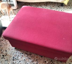 PUOUF in stoffa bordeaux, trasformabile in LETTO SINGOLO. Leggermente scolorito in alcuni punti. MAI UTILIZZATO. Misure chiuso: 77X100 h 40 cm Aperto: 77 X 180 cm Spedizione a carico dell'acquirente