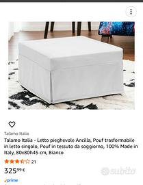 Vendo pouf che si trasforma in letto singolo con copri pouf in tessuto bianco come da foto .