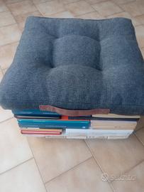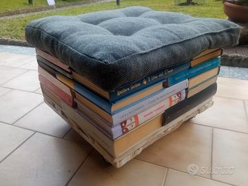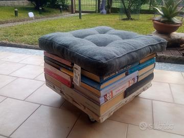 POUF FATTO DI LIBRI CON CUSCINO BASE LEGNO CON RUOTE CUSCINO CM 37 X CM 37 NUOVO
