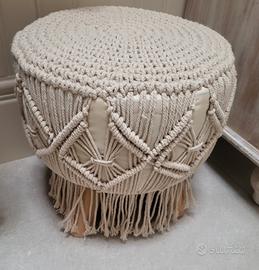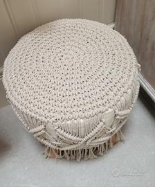 Elegante pouf rotondo con lavorazione macramè. Diametro 30 cm