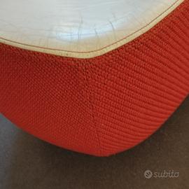 Rivestimento in tessuto arancione e pelle bianca. originale. Base in plastica termoformata. Dimensioni 55x75xh.35cm
