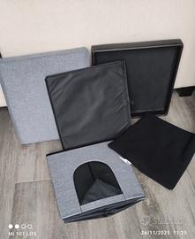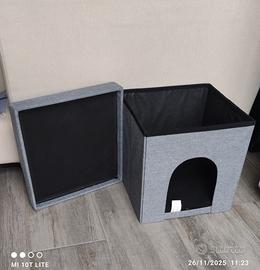 Pouf multifunzione! Perfetto come seduta e come accogliente casetta per gatti o piccoli cani. Incluso anche un secondo coperchio (proveniente da altro pouf) colore nero in finta pelle. Misure: 38 x 38 x 38 cm (H/L/P) Prezzo a solo €25! Ritiro presso la mia abitazione