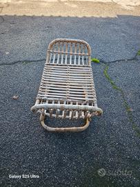Vendo pouf o poggiapiedi vintage in bambù e vimini, spesso identificato come parte di un set di design italiano della metà del secolo, come il modello B4 di Tito Agnoli per Bonacina. Informazioni sul prodotto Tipologia: Poggiapiedi, pouf, o a volte unito a formare una dormeuse o una chaise longue. Materiali: Realizzato interamente in bambù curvato e rattan intrecciato. Design: Presenta una forma sinuosa e morbida con una struttura leggera, tipica del design italiano degli anni '50 e '60. Designer/Produttore: Design spesso attribuito a Tito Agnoli per Bonacina, un rinomato produttore italiano di mobili in vimini e rattan. Condizioni: Gli articoli vintage come questo possono mostrare segni di usura leggera coerente con l'età e l'utilizzo, ma sono generalmente in buone condizioni strutturali. Disponibilità: Prodotti simili, spesso venduti come pezzi unici o in coppia, sono disponibili presso rivenditori di design vintage e aste online. Si trova a Firenze in zona di peretola via pistoiese.