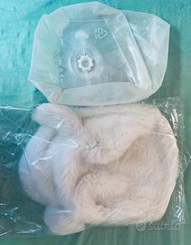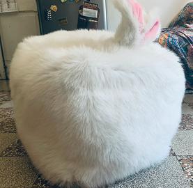 Pouf peluche bianco con orecchie di coniglio IKEA, forma quadrata, poggiapiedi e contenitore. Camera ad aria interna, originale IKEA come da foto. Perfetto per camera bambini o arredo moderno, su Roma anche ritiro a mano